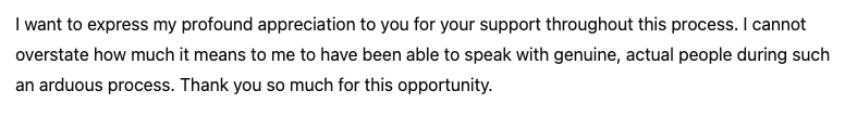 Feedback from one of the candidates we've been dealing with on behalf of a customer. And this is after they received a rejection email!
